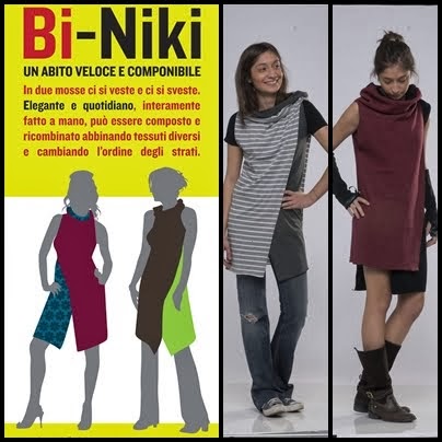 Concorderete anche voi che comprare un solo vestito TRI-NIKI col quale ci si può vestire tre volte in modo diverso sprecando meno tessuto è un'idea grandiosa e molto creativa. Tessuti, tra l'altro prodotti